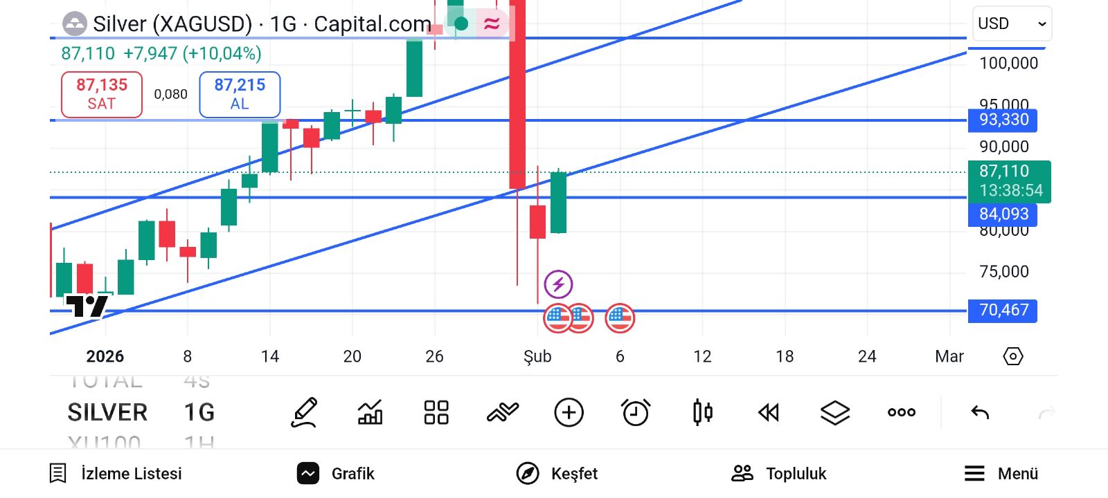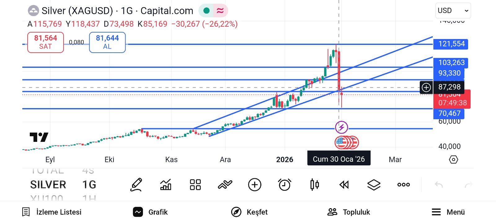 87.30 üzeri günlük kapanış yapamayan gümüşü ben almam