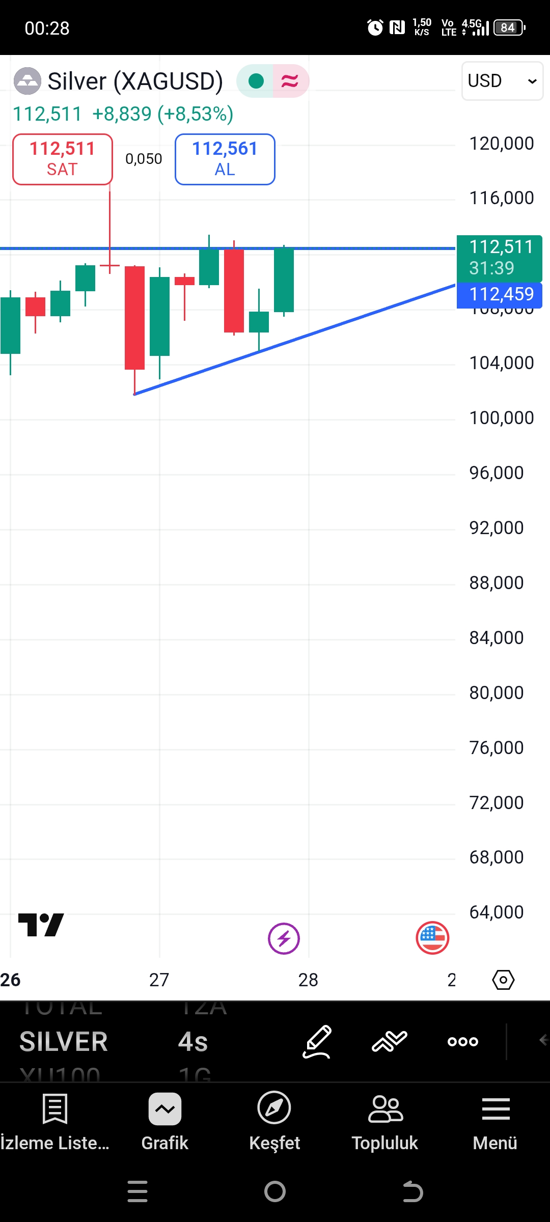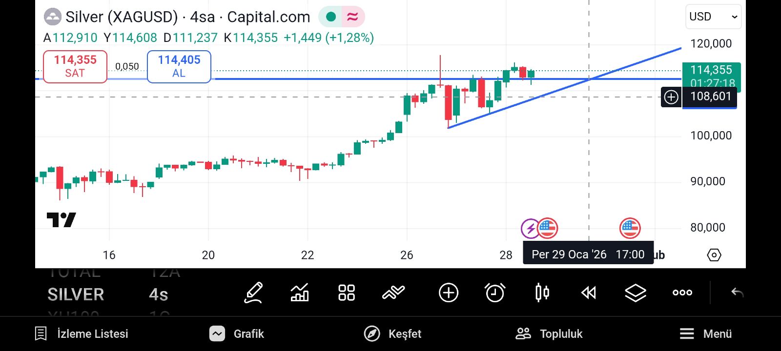 Gümüş için Boyno2727 yorumu ()Konu: 4saatlik grafikte zurnanın zurt dediği yerdeyiz