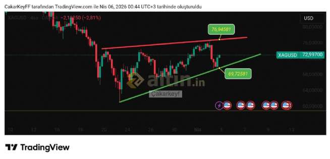Bu grafikte ise yükselen kanal formasyonu kırılımlar takip edilir yukarda kanaldirenci 76.95 üzeri kalıcılık poztf