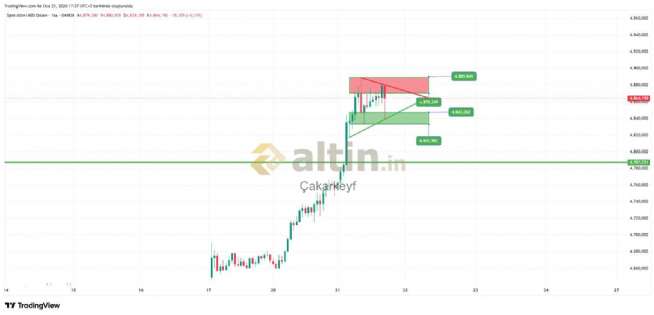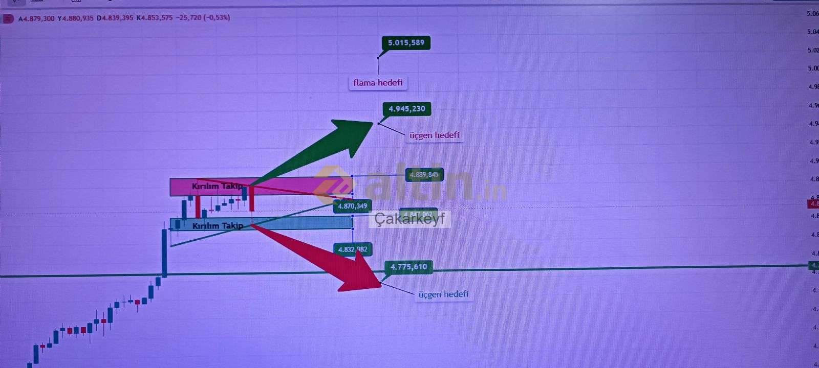 Gram Altın için Çakarkeyf yorumu ()Ons Altın 4913 direnç,4840 4775 destekleri.
