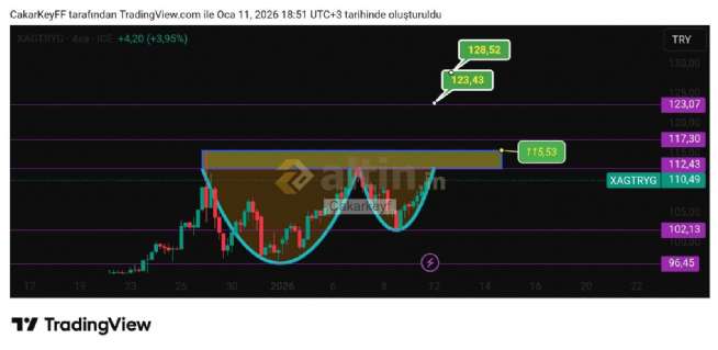 Gümüş Tl 4s fincan kulp formasyonu senaryodur, çalışması halinde fiyat heydefleri yukaridadir.
