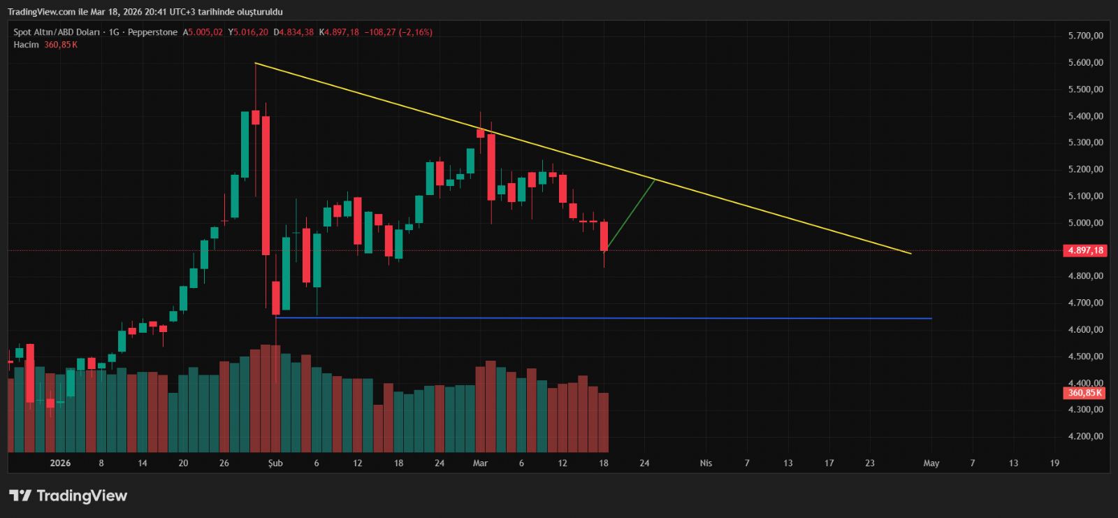 Gram Altın için celik2119 yorumu ()5200 dolar civarından açtığım Altın shortu kapattım. Biraz yükselirse yeniden short açarım.