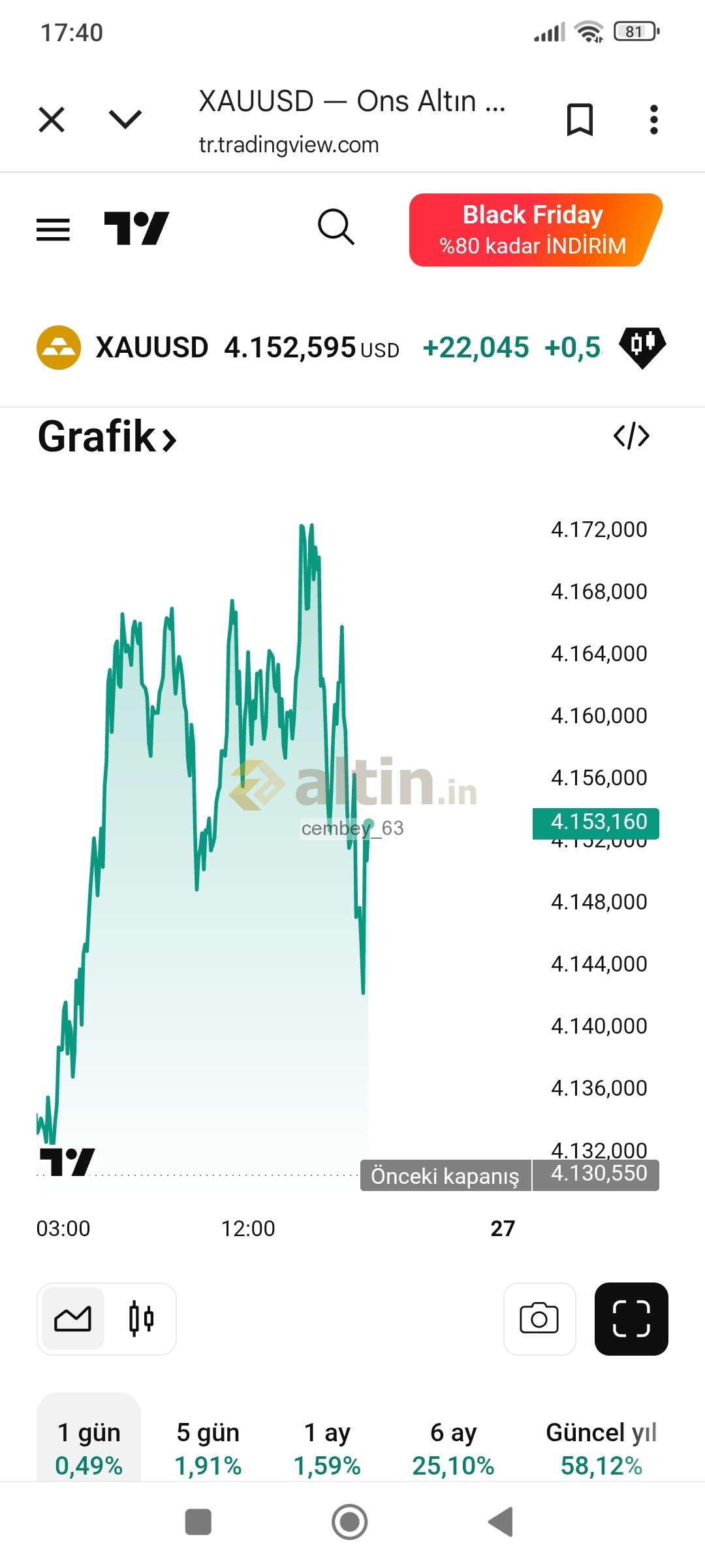 Gram Altın için cembey_63 yorumu ()Bu akşam ons 4150 kapatır.?