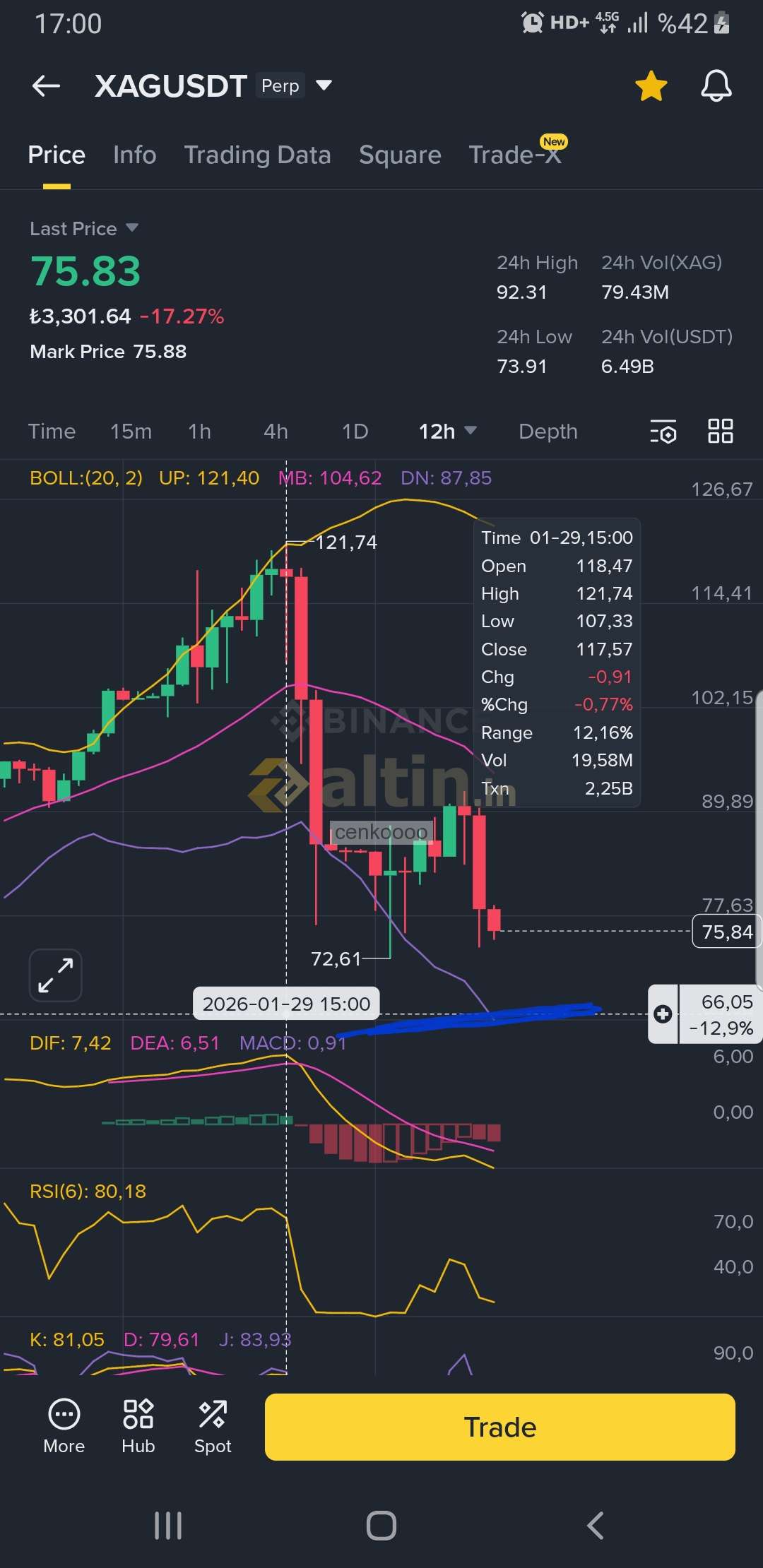 Gümüş için cenkoooo yorumu ()Başkan 12h te 68 var altta 17 ye kadar bi ihtimal vurdurma ihtimali?