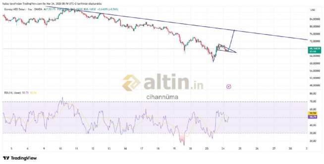Formasyon çalışırsa bugün 77 onsa (düşen tepe direncine) temas edebilir.
