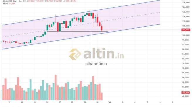 DXY Tekrar yukarı döndüğünde metaller düşer.