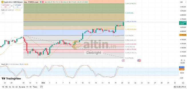 4664 usd civarında bir süre oyalanma sonra destek alınca 4720.5 usd Altın oran hedefine sert kırılım. Altın oran hedefinde de fazla oyalanmadan 4826 usd hedefine ulaştı. Bu hedefin de üstünde kalırsa 4940 usd var. 4 saatlik ve saatlikler aşırı alımda. Biraz geri çekilmesi fena olmaz. Ancak momentum yakalandı ise geri çekilme gecikebilir.