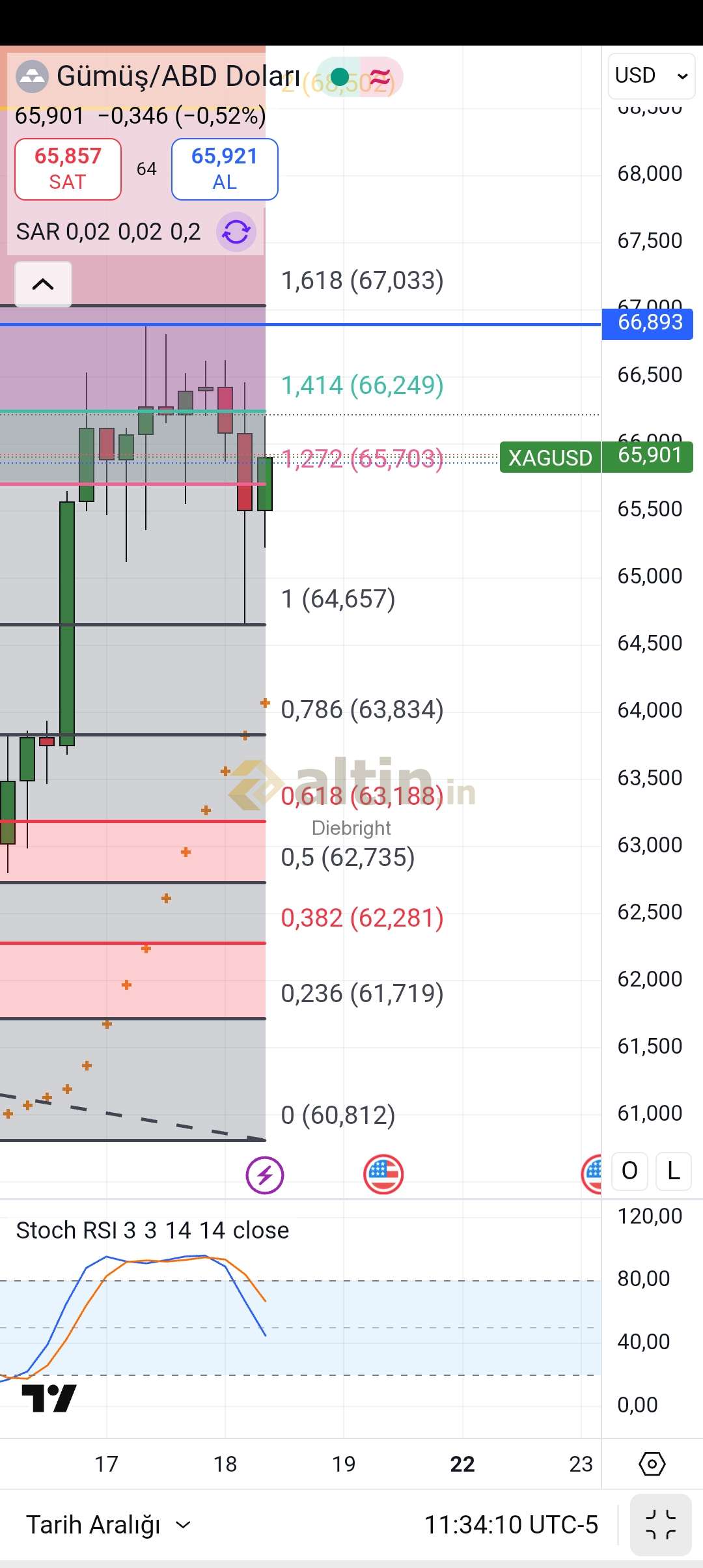 Gümüş için Diebright yorumu ()65.12 hacimli geçiliyor. Altta 64.657 usd var. Burada alımı durdurup izlemeye aldım.