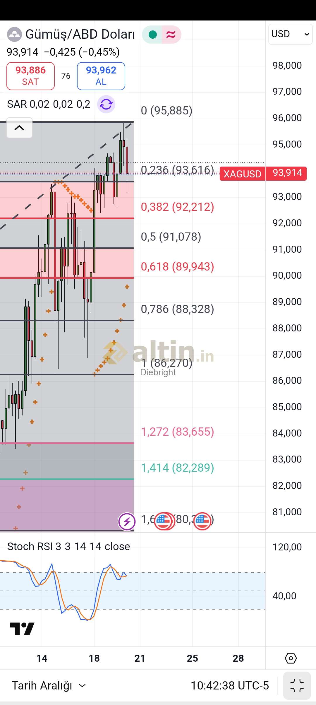 Gümüş için Diebright yorumu ()95.6 usd geliyor. 93.6 destek alınca biz de alsaydık keşke :) Neyse eldeki ile devam.
