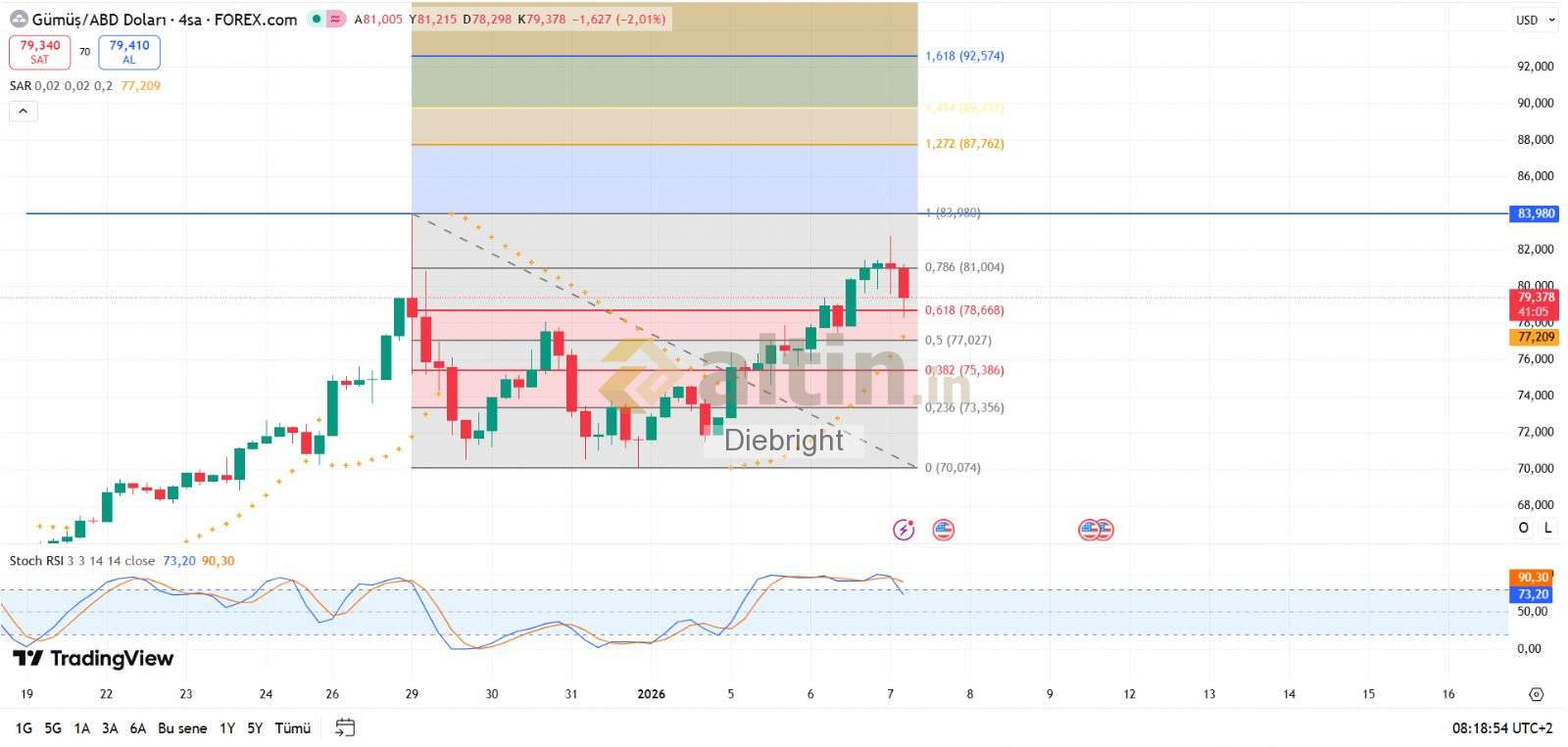 Gümüş için Diebright yorumu ()Umarım yine 78. x usd ler gelir tekrar alırız. Ful girsek 80k gelirmiş. Aza da şükür. Bugün 16.30 verisi cuma günkü tdi verisinin öncüsü. Gümüş boyle hareketli olur haftanın kalan günlerinde de.