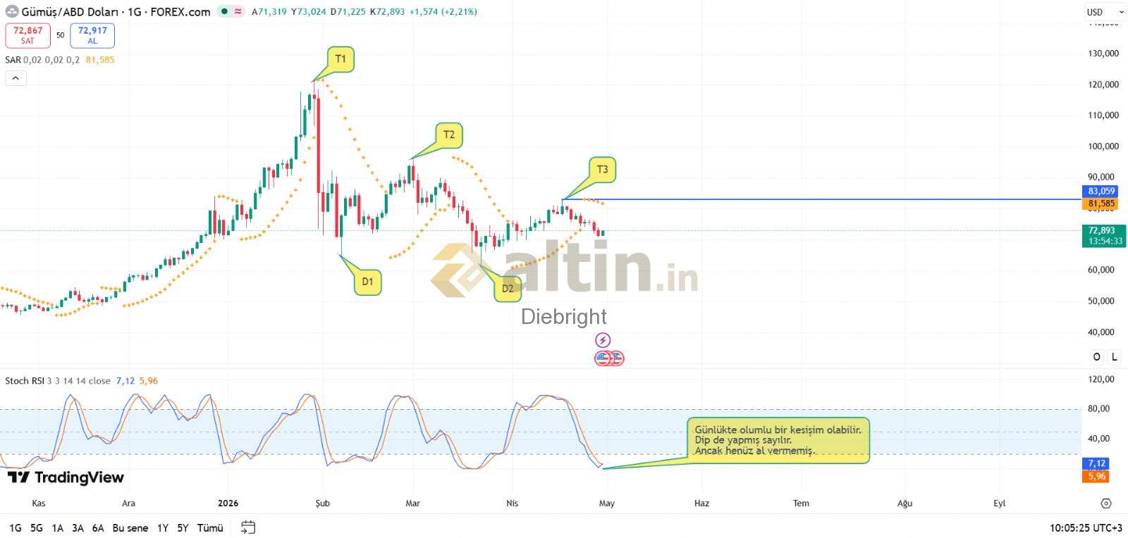 Gümüş için Diebright yorumu ()73.3 usd değerinde 4 saatlik sar direnci var. Orayı deneyebilir.