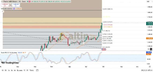 Platin de 1586 usdye kadar çıktı. 1574.5 fibo üzerinde 1620 usd ihtimali var.
