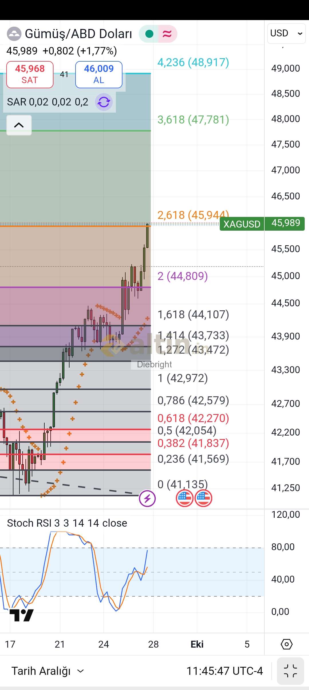 Gümüş için Diebright yorumu ()45.94 usd üzerinde gelecek bir kapanış haftaya 47.78 usdye götürme ihtimalini taşır. Sınıra yakınız bakalım nasıl kapatacağız.