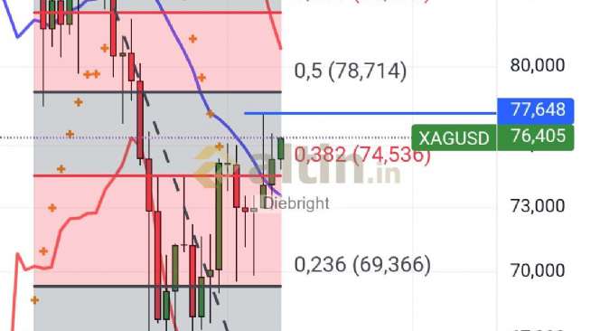 Gümüş için Diebright yorumu ()Günlükte biraz pay var yukarısı için. 4 saatlikte daha fazla var. 77.65 usd önceki tepeyi geçerse güzel olur.