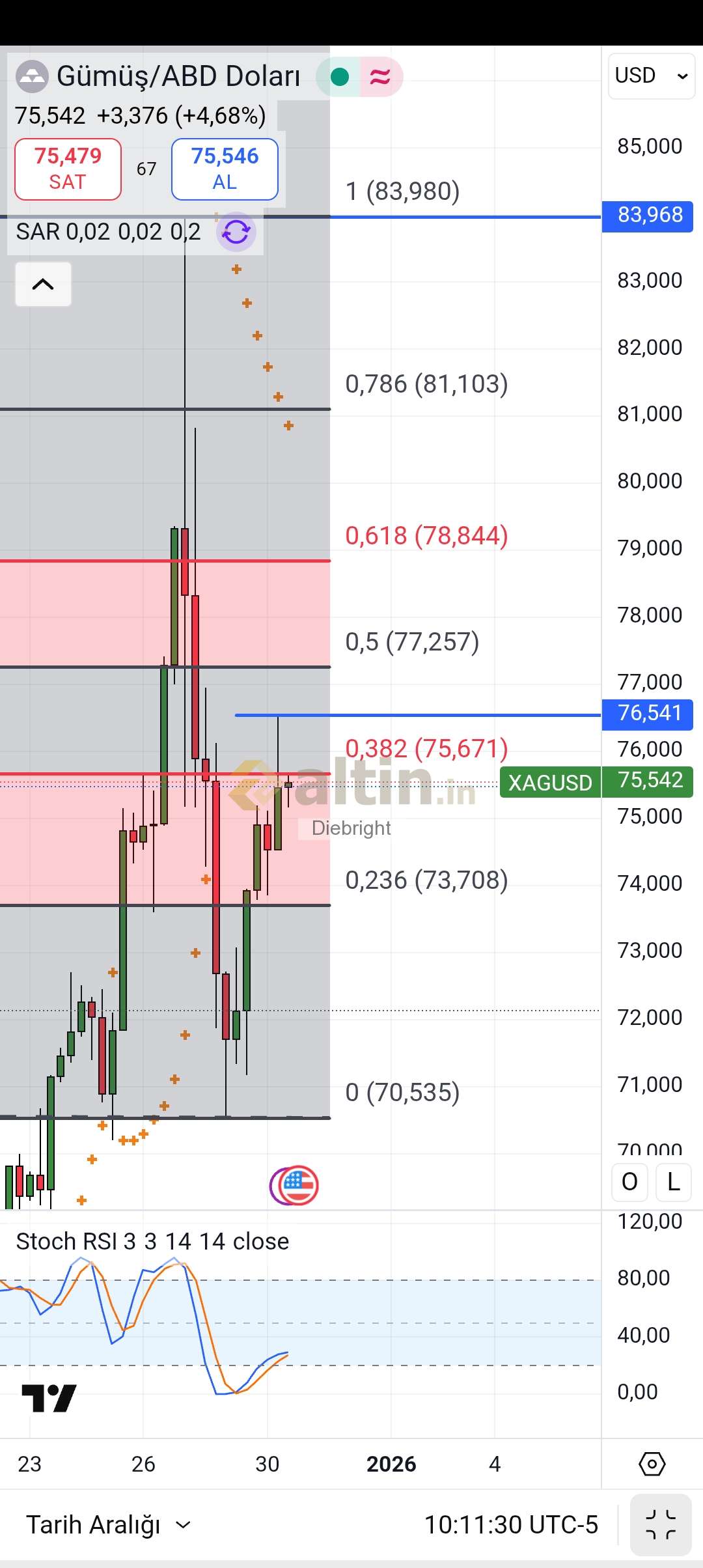 Gümüş için Diebright yorumu ()Şu 75.67 fiboyu direnç değil destek yapsın da artık ekranda 77.26 görelim.