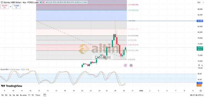 En azından 73.71 usd üzerinde kalmalı. Tepkinin güçlenmesi için tepki seviyelerinin devamı gelmesi gerek. Bir üst seviye gelmedi hala. O da 75.67 usd. Kademe kademe bakacağız. Keşke 80-81 usd gelse de çıksak. Ancak kademe kademe bakacağız. Ben 100 TL civarından ilave yapıp al sat yaptım. 98 TL uygun yerdi keşke oradan alsaydık. 4 saatlik de dip yapmıştı. Şu an tepki alıyoruz. Yeni açılan 4 saatlik mum arada. Bu mum da olumluya dönerse 77.26 usd hatta belki 78.85 usd görürüz. Hareketin güçlü tepkiye hatta belki yeni zirveye dönüşü bu tepki seviyelerinin geçilmesi ile olur. 4 saatlik göstergeyi fazla şişirmeden inşallah gider ki momentumu kesmesin.