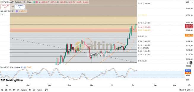 Platin de tekrar 1619 usd nin aşağısına gelmedikçe alım fırsatı vermeyebilir. 1619 usdnin aşağısına düşerse 1574.5 usd iyi alım yeri olur.