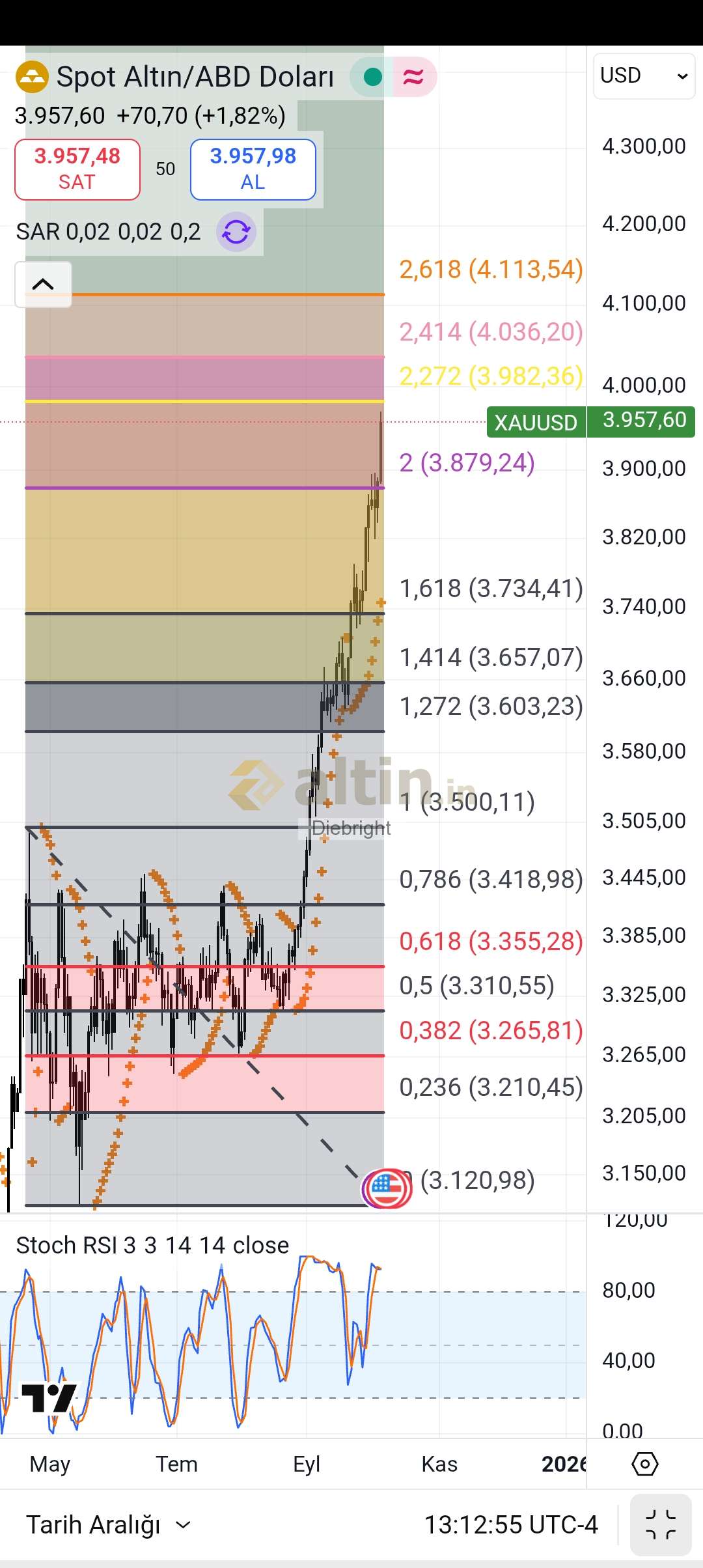 4000 usd psikolojik değer. 4036 fibo 4113 usd fibo diye gidiyor. Olur da 4113 gelirse fena kopar.