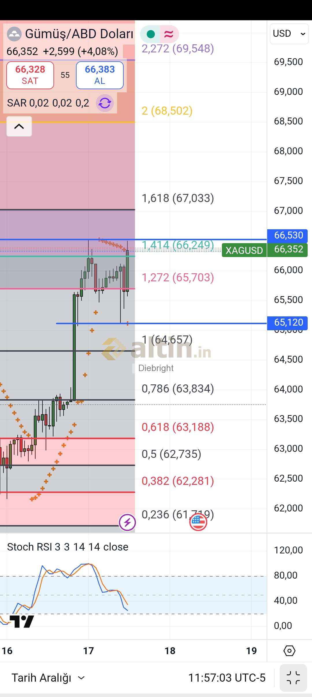 Gümüş için Diebright yorumu ()67.03 fiboyu bekliyorduk. 66.89 gelmiş. 67.03 usd fibo 1.618 seviyesi