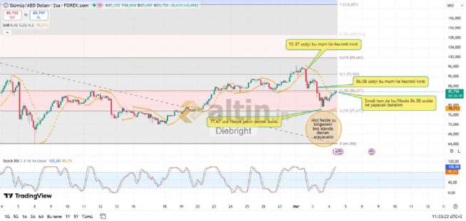 Gümüş için Diebright yorumu ()86.08 usd üzerinde kalıcı olmasına bağlı. Kalıcılık olursa çok rahat gelir.