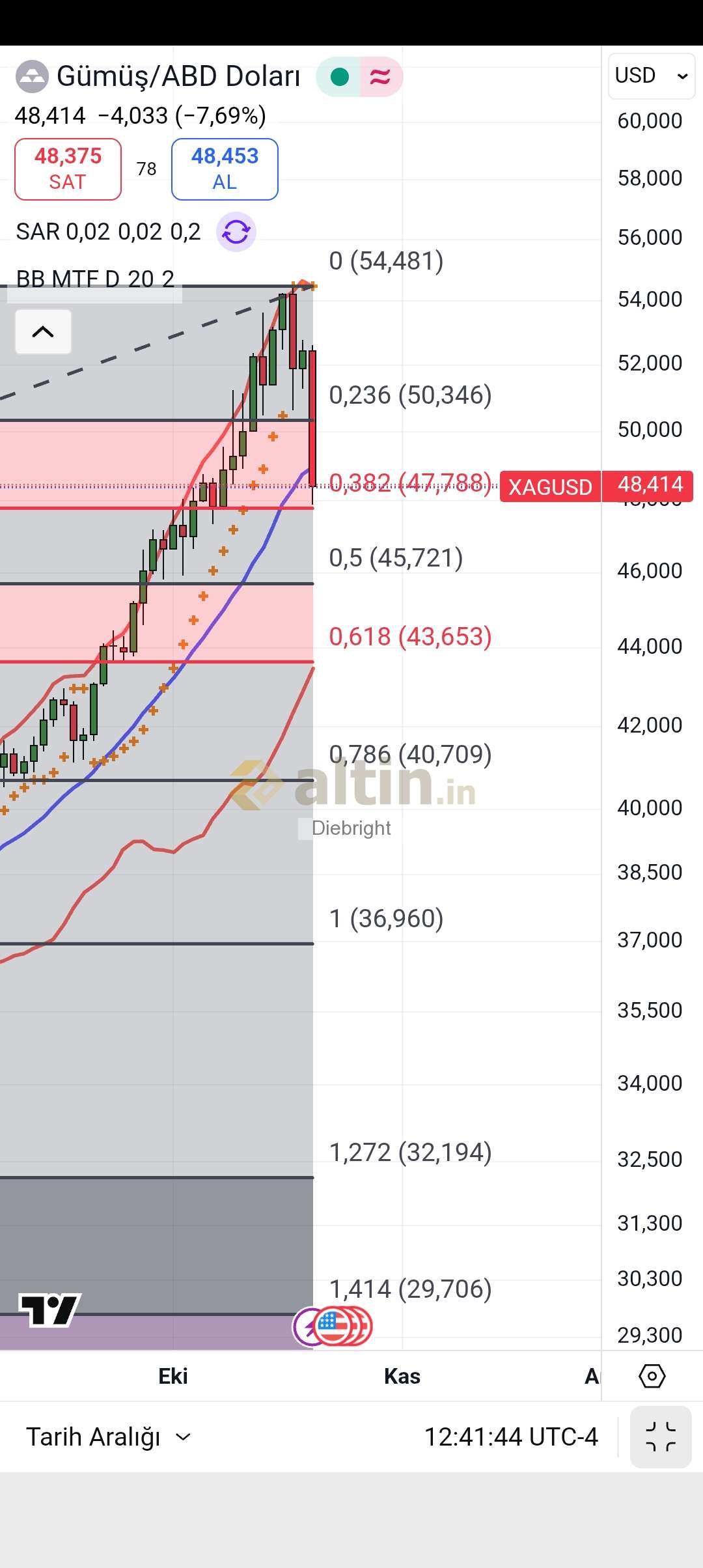 Platin ve paladyum takip etmekten gumuse odaklanamadik. Sabah paylaştığım grafikte 47.79 usd düzeltme seviyesi gelirse iyi olur dedim. Hemen hemen gelmiş. Grafikte görünüyor. Ve buradan bir tepki de gelmiş. Gunluk gösterge muhtemelen yarın dip yapar ve toparlanma çalışmasına başlar. Bu toparlanma tepki seviyesine mi yoksa yeni zirveye mi olur bilemeyiz. Ne kadar sürer onu bilmek de zor. Can sıkıcı kısım yukarıda yan yana üçüncü sar direncinin de günlükte olusmadi. Bu ciddi saticili bir piyasa olduğunu ve zayıflamanın devam edebileceğiniz işaretidir. 73 tlyi nerdeyse gören gram gümüş 65 tlnin aşağısına kadar iğne attı. %10 dan fazla bir kayıp. 73 tlden satabilir varsa gayet sevinerek izliyordur düşüşü.