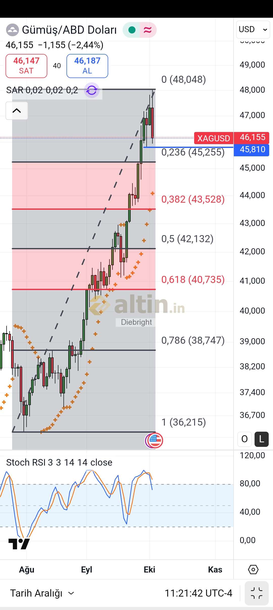 Gümüş için Diebright yorumu ()45.94 ve 45.25 usd bu iki değere dikkat etmek gerek. 45.25 ozellikle gelse beklenen düzeltme geldi diyeceğiz.