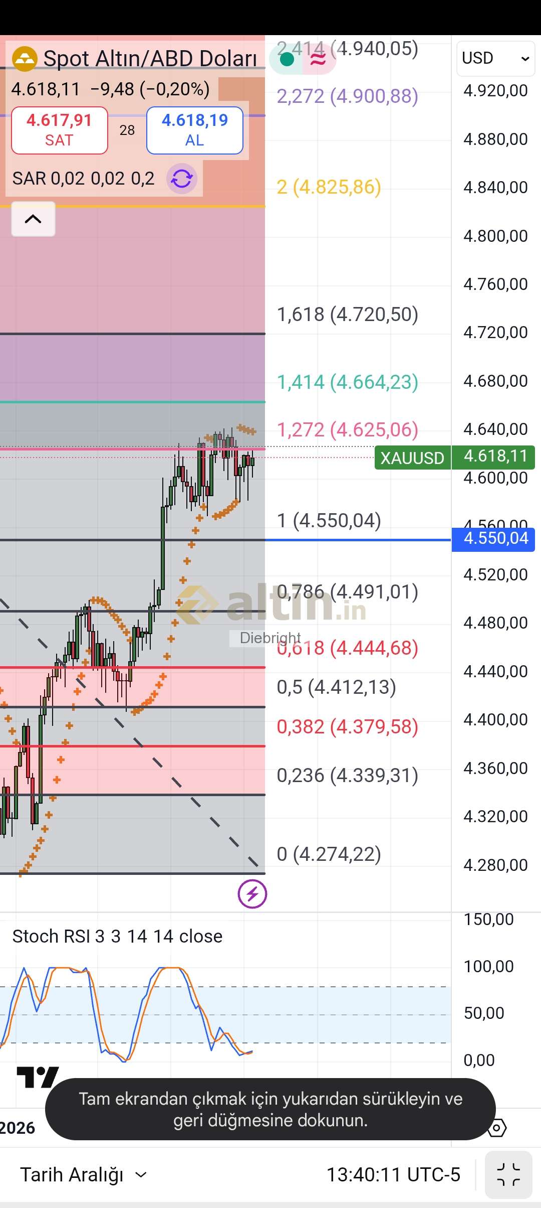 Altın ons direnç aynı 4625 usd . Net çalışıyor. Gosterge 4 saatlikte dipte. Yani 4625 usd değerinde bir tutunabilse yukarı gidecek belki de 4720 usd seviyesine kadar.
