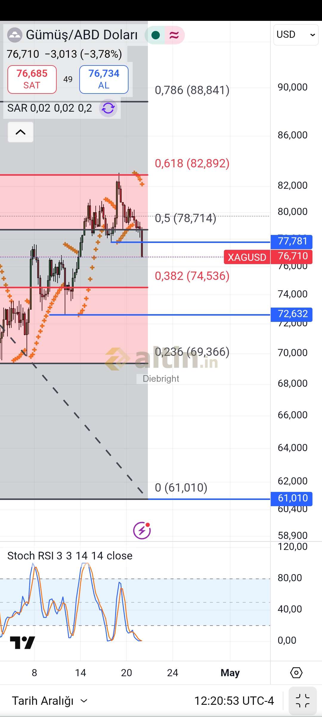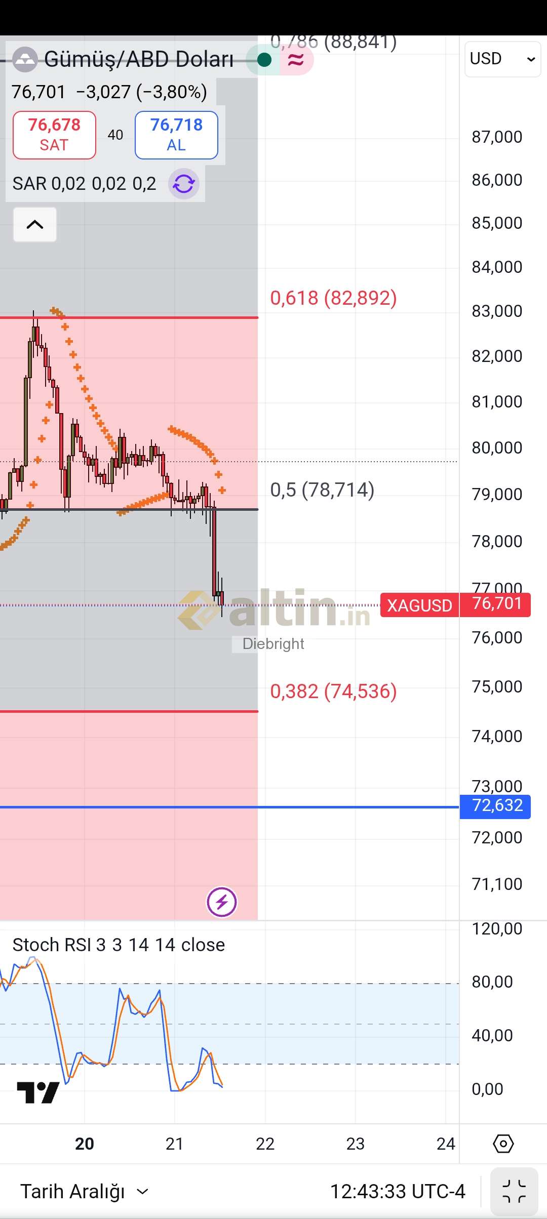 Gümüş için Diebright yorumu ()Stoch rsi 4 saatlik gösterge dip yaptı gibi. Bu halde bir tepki oluşma imkanı var gibi.