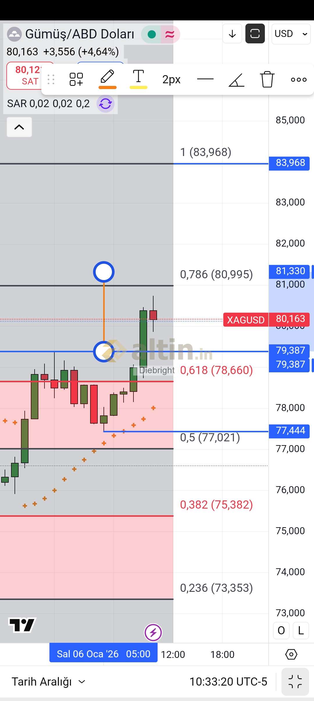 Saatlikte mini çanak hedefi 81.33 usd . Fibo ise 81 usd değerinde.