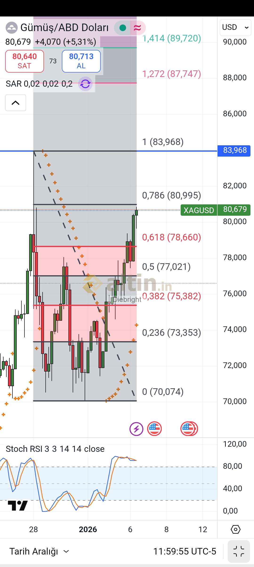 Gümüş için Diebright yorumu ()Durum iyi nazar değmesin diyelim. O 70 usd lerde al sat kaçırdık olan ona oldu.