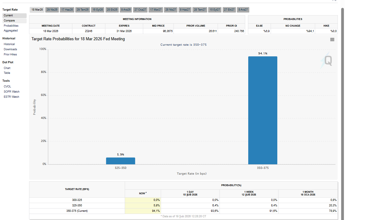 Piyasa hala %94 ile fedin faizi sabit bırakacağını düşünüyor.