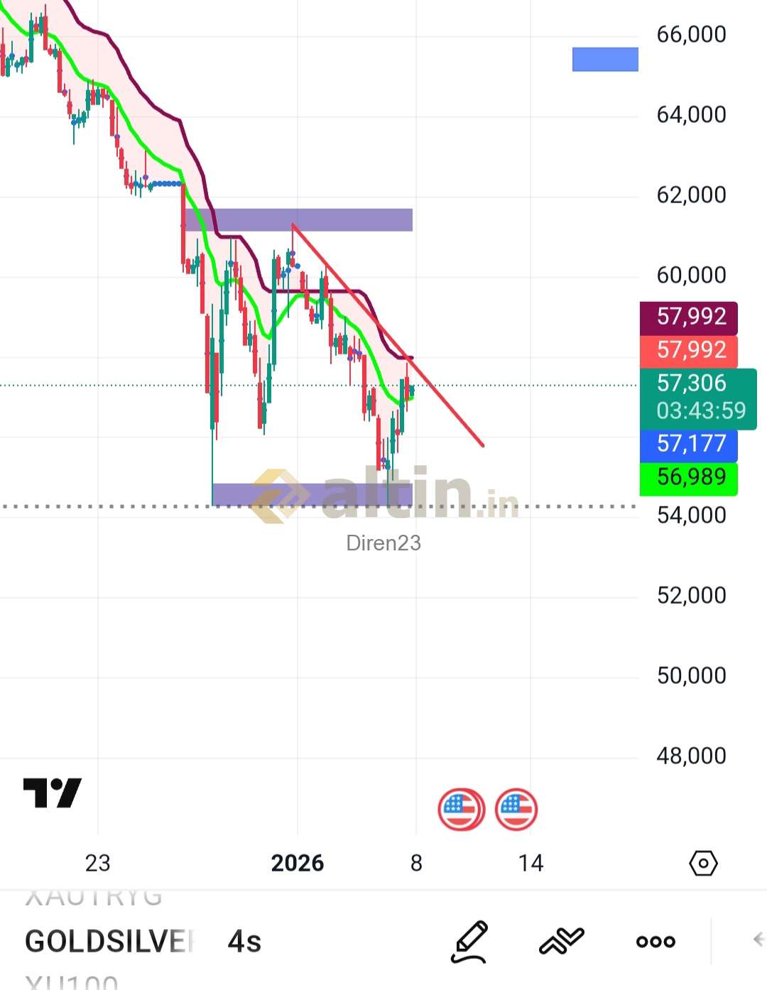 Gümüş için Diren23 yorumu ()Gümüş boğa yaşıyor, orta uzun vadede çok güzel yerlere gelecek ama kısa vadede düzeltme olmazsa olmaz sağlıklı bir yükseliş.