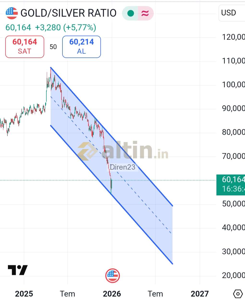 Gümüş için Diren23 yorumu ()Birazdan Altın /gümüş rasyosu yukarıya bir atak yapacak 62.30 üzerine atıp kalıcı olursa gümüş satış yiyebilir, elinizde TL olsun arkadaşlar. Kademeli girin kademeli satın, tüm paranızla girmeyin. Herkese bol kazançlar, iyi geceler.