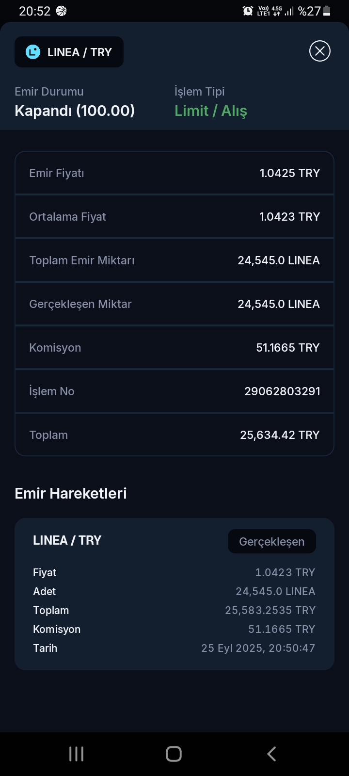 Bitcoin için DolarTLEuroTL yorumu ()Linea ya emir verdim 1 liraya inerse alacağım