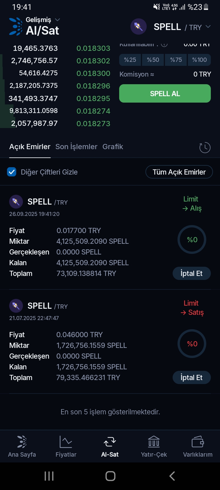 Bitcoin için DolarTLEuroTL yorumu ()Dostum 0.0183 a spell al emri girdim @baran6576