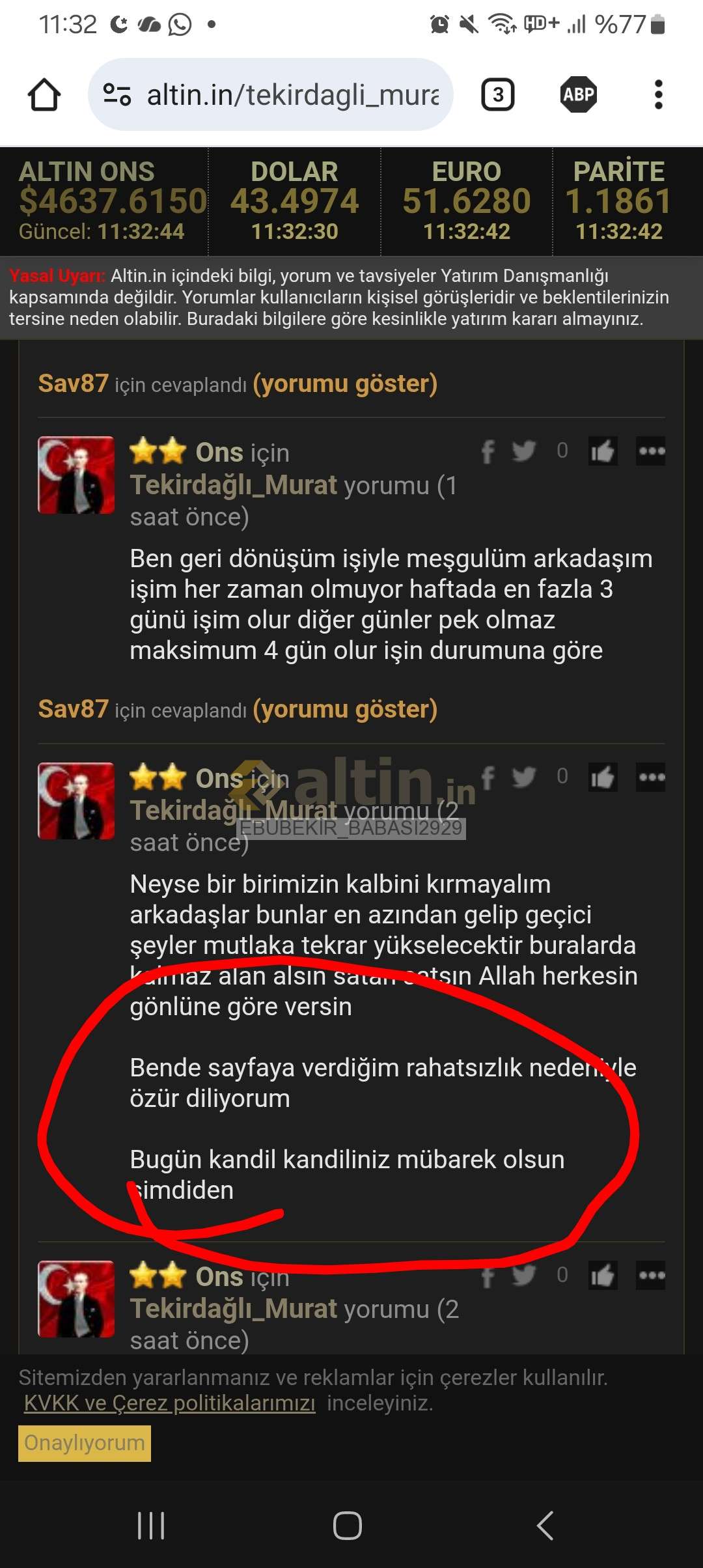Ons için EBUBEKİR_BABASI2929 yorumu ()Rasyo 60 a gidiyor, orda karar yeri
