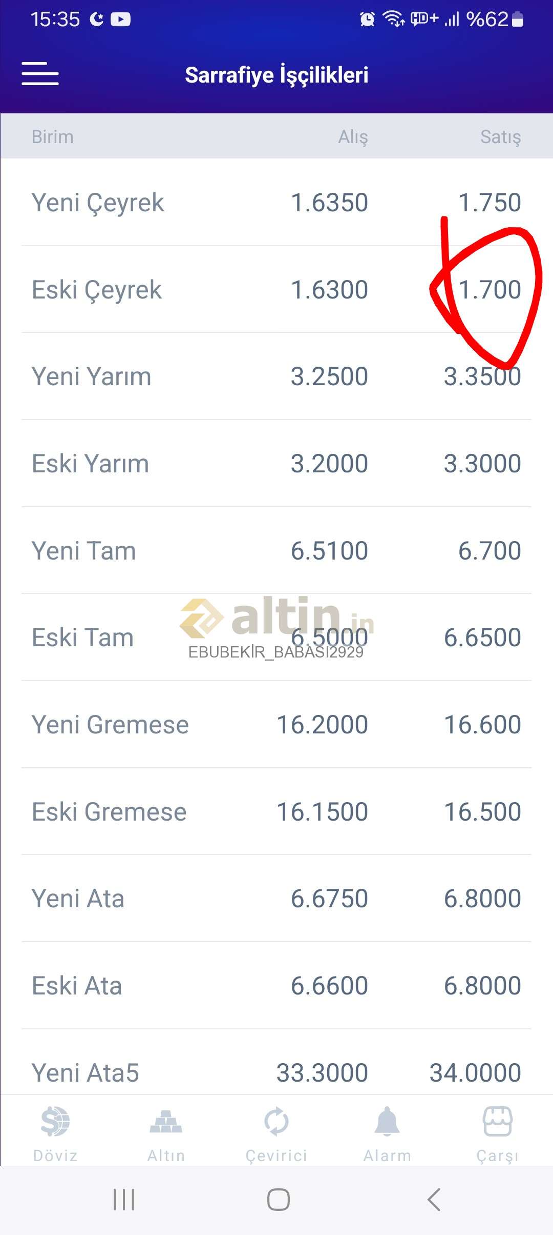 Ons için EBUBEKİR_BABASI2929 yorumu ()Konu: Elinde has olan bugün çeyrek alınabilir