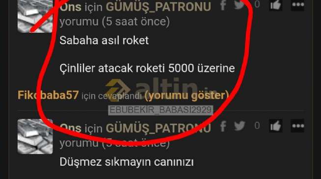 Ons için EBUBEKİR_BABASI2929 yorumu ()Fiziki altını olan arkadaşlar. Rasyo 60 uzerindeyse, Fiziki piyasa 12 usd kg da fazlaysa, makamlar kg da 3000 usd civarında ise. py size altın kitliyordur. bu bilgiyide size kimse vermez.