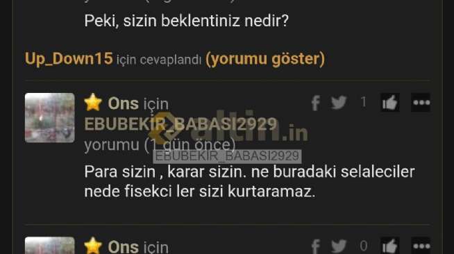 Ons için EBUBEKİR_BABASI2929 yorumu ()Konu: 2 numara mankidtraderxx
