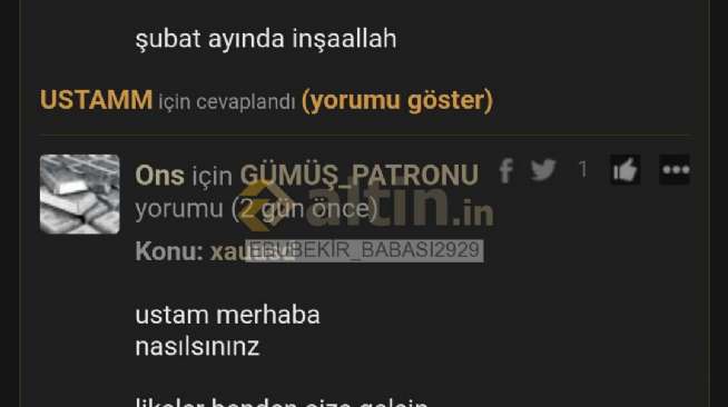 Ons için EBUBEKİR_BABASI2929 yorumu ()Bu dediklerimi 6 aylık yon takibi için. yoksa ons günlük 200 usd civarında aşağı ve yukari harekentler normaldir.