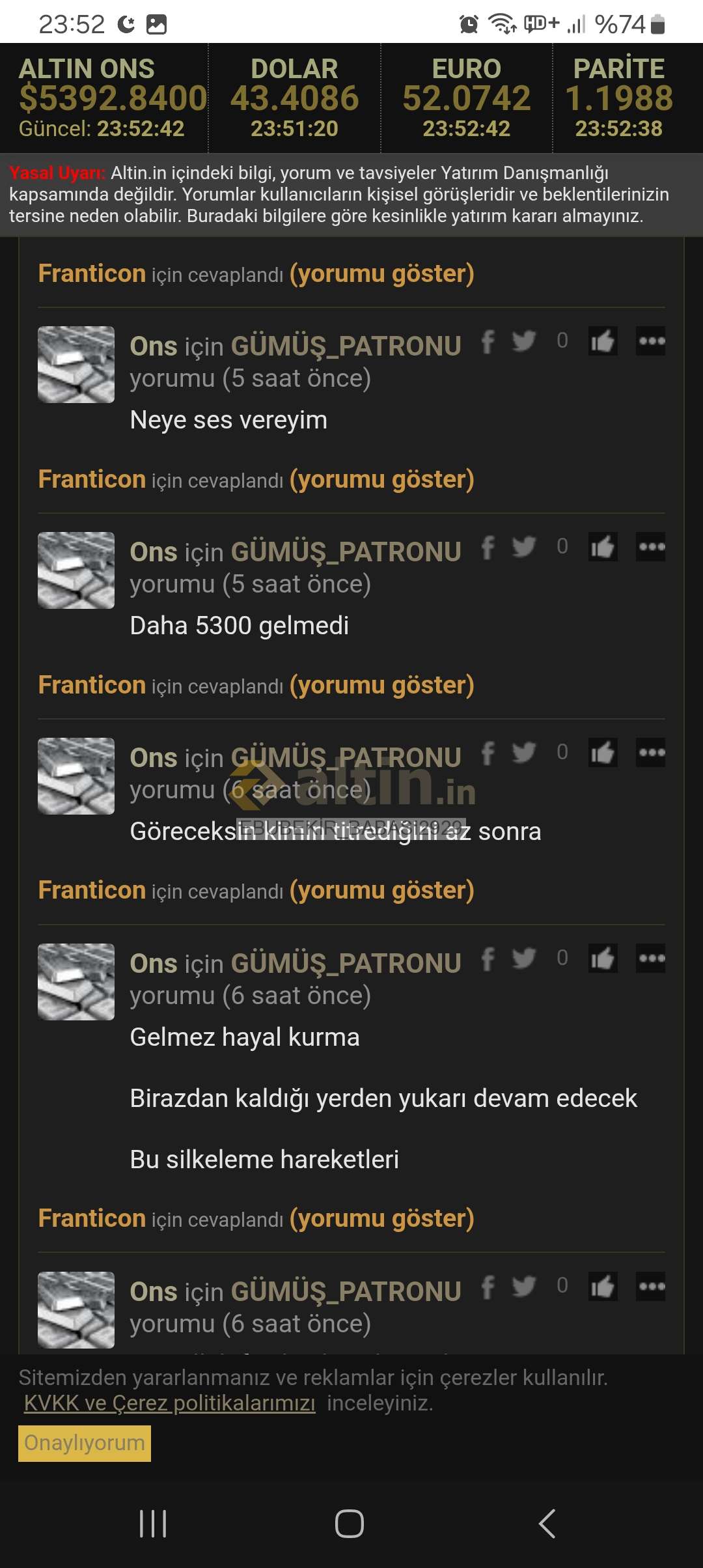 Ons için EBUBEKİR_BABASI2929 yorumu ()Laftan anlamıyor kardeşim. Sürekli hevlemekle meşgul.5 gün önce, rasyo düştü. Ons 5000 kırar geçer dedim.