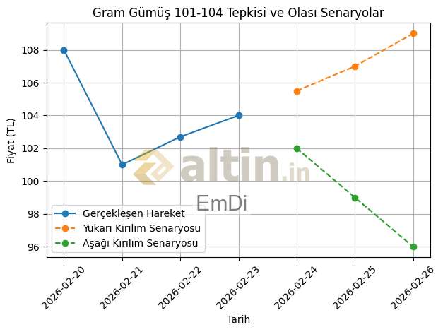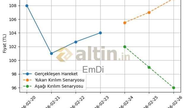 18 Şubat itibarıyla gram gümüş 103,19 TL civarında. 101'den gelen tepki sonrası 104'ü zorladı ama henüz güçlü bir kırılım yok. 105–106 bandı aşılmadan net yükseliş demek zor. 101 altı ise yeniden satış baskısı anlamına gelir.