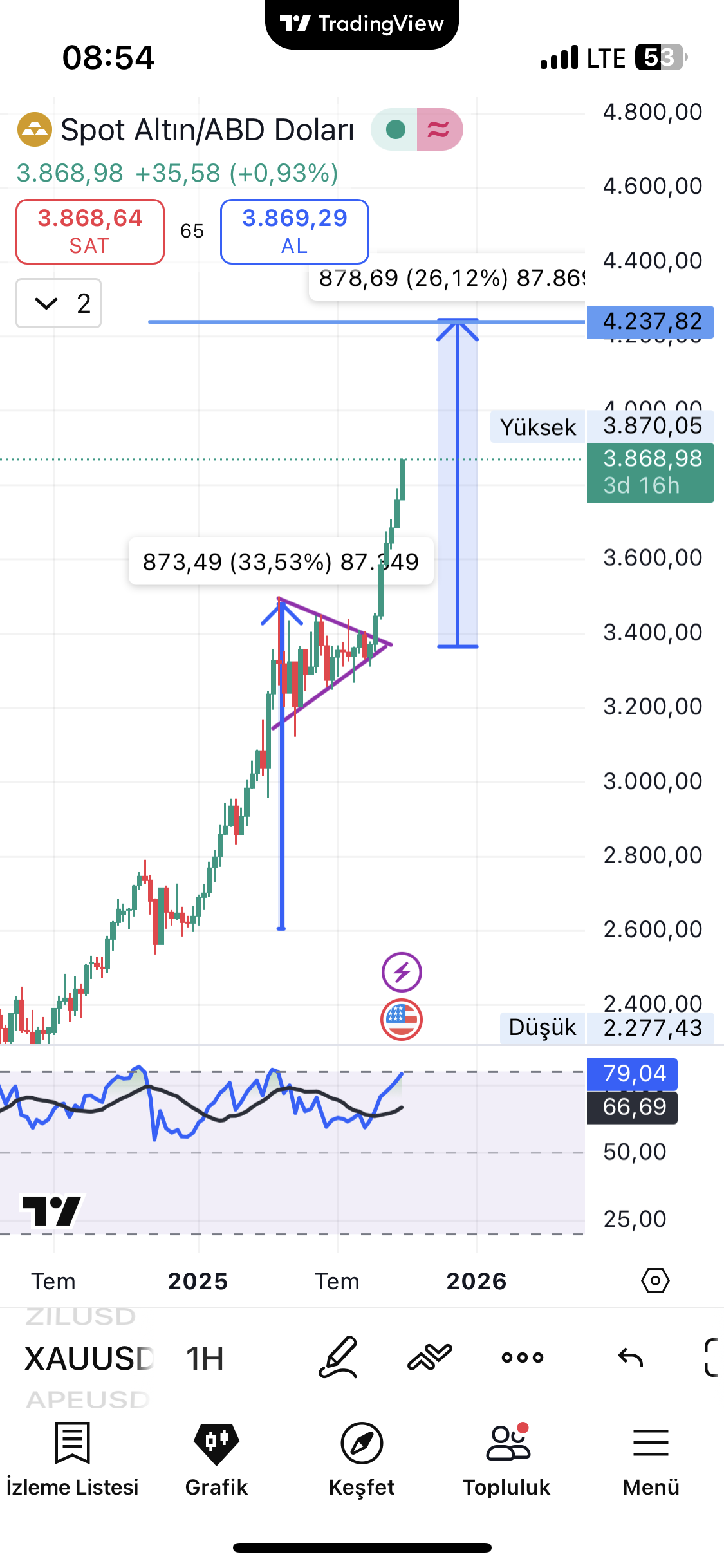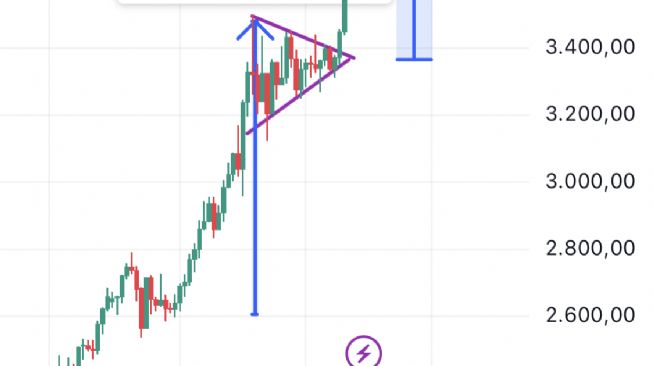 Haftalıkta daha önce yukarı kırılan simetrik üçgen formasyonu hedefi 4.200 ler civarında gözüküyor. İzleyelim görelim. YTD. @Eragon_