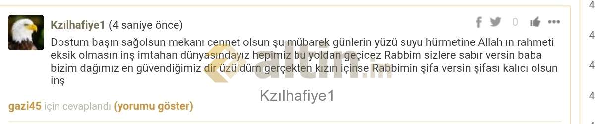 Texber_ (13 saat önce)Basın sağolsun Allah kızına saglık sıhhat versın