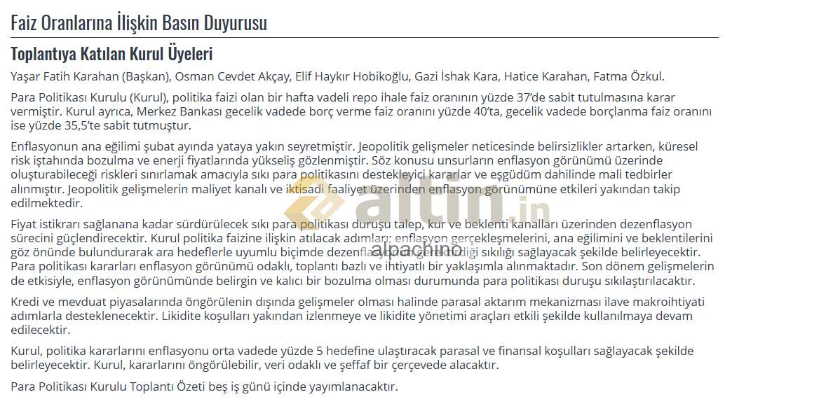1) Altin.in'de yer alan içeriğin doğru ve/veya güncel olduğu hiçbir şekilde iddia veya garanti edilmemekte, hiçbir veri ve/veya paylaşım, yatırım danışmanlığı kapsamına girmemektedir. Sitenin içeriği referans alınarak yapılacak hiçbir işlemin doğuracağı maddi ve/veya manevi herhangi bir kayıptan altin.in sorumlu değildir. 2) Altin.in ziyaretiniz sırasında ip adresiniz ve bilgisayarınız aracılığıyla toplanabilen diğer veriler altin.in tarafından kayıt altında tutulmaktadır. 3) Altin.in tüm içeriği önceden uyarmaksızın değiştirme, kaldırma ve yenilerini ekleme hakkına sahiptir. 4) Altin.in gerekli gördüğü taktirde üyelerin ip numaralarını engelleme hakkına sahiptir. 5) Altin.in yorumlar bölümünde ki içerik, görsel, yorum ve paylaşımlar (tarafımızdan onaylanmaksızın) kullanıcılar tarafından kendi iradeleri ile paylaşılmaktadır. Bu içeriklerden dolayı doğabilecek hukuksal konulardan içeriği oluşturan kullanıcı sorumlu olacaktır. 6) Altin.in'in tüm kullanıcıları 5651 Sayılı Kanunun 8. ile 9. Maddesine ve TCK'nın 125. maddesine göre yaptıkları paylaşımlardan kendileri sorumludur. Bu bağlamda altin.in hukuksal haklarını saklı tutar. 7) Bu uyarılar önceden haber verilmeksizin değişkenlik gösterebilir takibi kullanıcılarımızın sorumluluğundadır.
