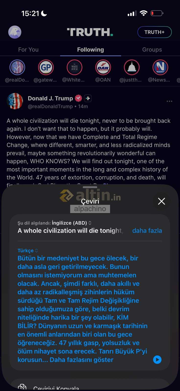 zekamerak (19 dakika önce)Tanrı büyük lYran Halkını korusun yazıyor aslında mesajında.. çeviri hatası..