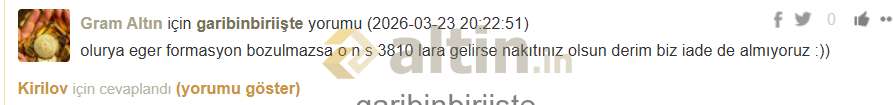 Mustafaizmir35 (3 saat önce)Brovo kardeşim Altın her zaman Altın olarak kalır ve her dönem talep görür ...