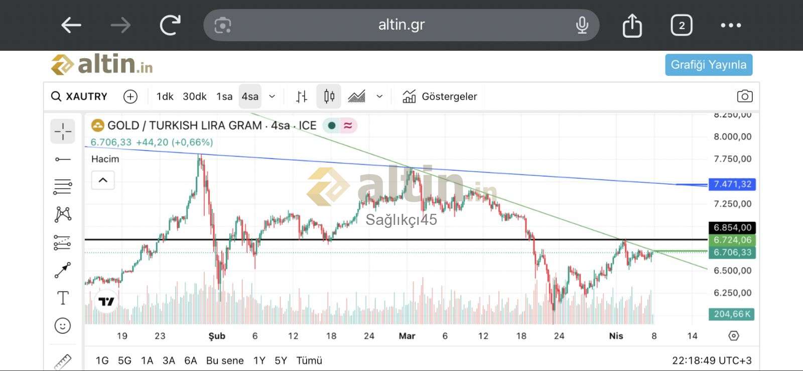 6850 tl üstü kapanış, büyük düşen çizgisine teyite gidebilir 7450 tl civarına, ytd