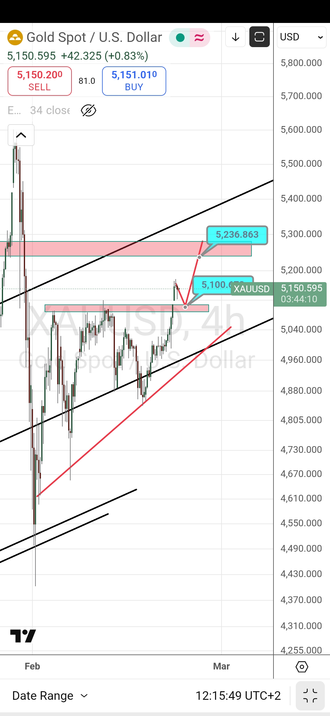 Grafik saatlik olunca (4 saatlik ) öyle bir durum görülmüyor..5100 ile 5150 arası 50 ons değeriyle ayarlı, sonrası 100 er onsluk kırılmalar öngörülmüş.