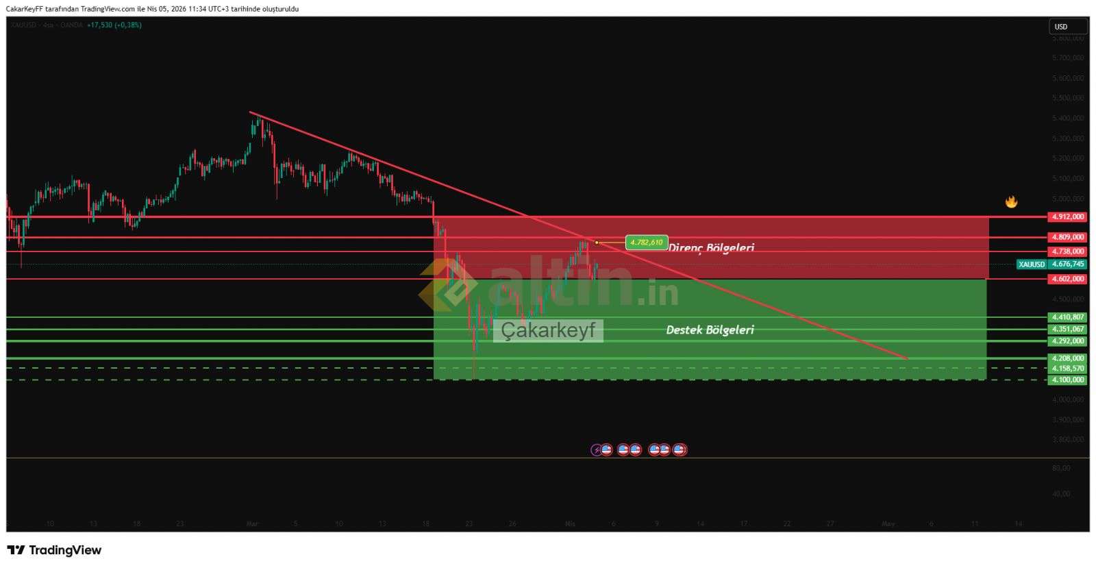 ons altın 4s destek ve direnç bölgeleri